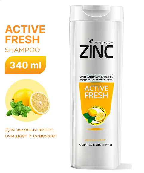Zinc Active Fresh, zinkli şampun bolup, goňaga garşy göreşmek we sagdyn kelläni saklamak üçin döredilen. Ýörite formula saçlary we kelläni netijeli arassalaýar, gyjyndyrmany azaltmaga kömek edýär we goňagyň öňüni alýar.