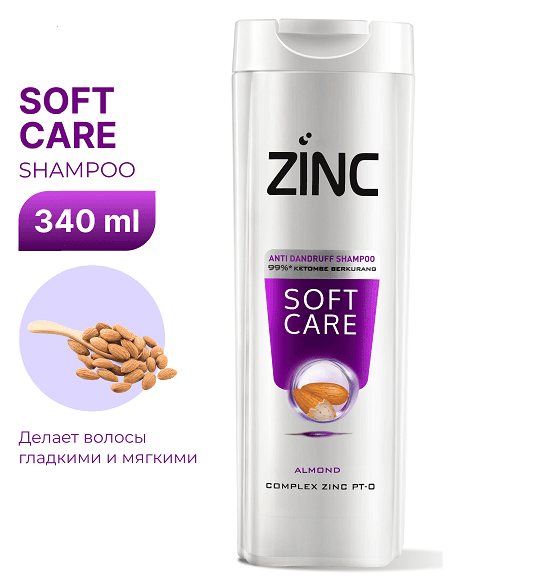 Zinc Soft Care ýumşak ideg şampuny 340ml, ýumşak saç idegini üpjün etmek bilen goňaga garşy göreşmek üçin döredilen.