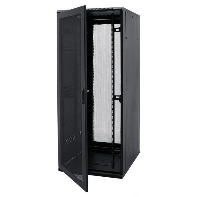 Ýokary sygymly professional serwer şkafy. Onuň 800 mm inliligi kabelleri tertipli we gizlin geçirmek üçin goşmaça amatlyklary döredýär. Şkafyň komplektinde 4 sany güýçli wentilýatordan ybarat bolan sowadyş moduly bar, bu bolsa işjeň serwerleriň aşa gyzmagynyň öňüni alýar. 32U beýikligi kärhananyň ähli tor enjamlaryny bir ýerde ýerleşdirmäge mümkinçilik berýär. Esasy häsiýetnamalary: Beýikligi: 32U (korpusynyň beýikligi ~1610 mm). Ölçegleri: Ini 800 mm, Çuňlugy 800 mm. Sowadyşy: Ýokarky panelde gurlan 4 wentilýatorly blok. Gapylary: Öň gapysy taplanan aýnaly, yzky gapysy — polat. Artykmaçlyklary: Gurnama amatlylygy: 800 mm inlilik kabelleri dikligine tertiplemek üçin goşmaça ýer döredýär. Berklik: 800 kg çenli agramy götermäge ukyply berk polat gurluşy. Hareketi we durnuklylygy: Komplektinde berkidilen tigirler we sazlanýan aýaklar bar. Giriş: Gulp bilen ýapylýan aýrylýan gapdal panelleri arkaly enjamlara hyzmat etmek örän aňsatdyr.