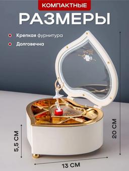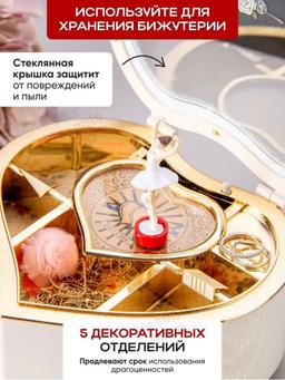 Шкатулка музыкальная для украшений с балериной "Сердце"