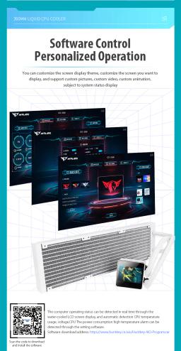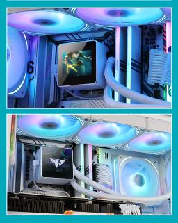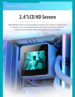 🔧 Radiator Ölçegi: 397 × 120 × 27 mm Materialy: Alýumin Şlang uzynlygy: 450 mm 💧 Nasos (Pompa) Ölçegi: 67.5 × 67.5 × 55.3 mm Tizlik: 1800–3000 RPM (±%10) Naprýaženiýe: 12V DC Kuwwat sarp edişi: 3.36W Podşipnik: Keramiki Baglanyşyk: 4-Pin PWM Ekran: IPS HD LCD 🌪 Fanlar (3 × 120mm) Ölçegi: 120 × 120 × 25 mm Tizlik: 800–2000 RPM (±%10) Howa akymy: 79.5 CFM Statik basyş: 3.1 mmH₂O Ses derejesi: 30 dBA Podşipnik: FDB (Fluid Dynamic Bearing) ⚙ Platforma goldawy Intel: LGA115X / 1200 / 1700 / 20XX AMD: AM3 / AM4 / AM5 Maslahat berilýän CPU: Intel i9-14900K