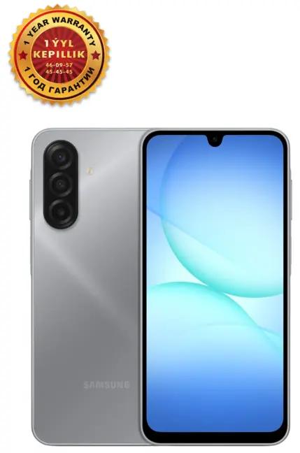 Smartfon Samsung Galaxy A17 4/128 GB, Çal — bu uly 6,7 dýuýmlyk Super AMOLED ekrany, kuwwatly 5000 мАh batareýasy we 50 Mp üçlüp kamera bilen ygtybarly enjamdyr. Ekran: 6,7 dýuýmlyk Super AMOLED ekran, FHD+ (1080 x 2340 piksel) çözgüdi we 90 Gs täzelenme ýygylygy bilen. Prosessor: Sekiz ýadroly MediaTek Helio G99 prosessor. Ýat: 4 GB operatiw ýat we 128 GB içki ýat, 2 TB çenli microSD kart bilen giňeldip bolýar. Kameralar: Esasy kamera: Üçlüp kamera ulgamy: 50 Mp esasy linza, 5 Mp ultra giň linza, 2 Mp makro linza. Öň kamera: 13 Mp. Batareýa: 25 Wt çalt zarýad goldawly, 5000 мАh litiý-polimer batareýa. Aragatnaşyk: 3G we LTE goldawy, Wi-Fi, Bluetooth, NFC. Goşmaça: Gapdal tarapda ýerleşýän barmak yzy skaneri, iki SIM kartany goldaýar.