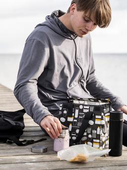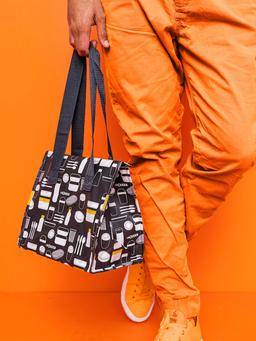 Сумка для ланча IKEA FLADDRIG серая с узором, 25x16x27 см