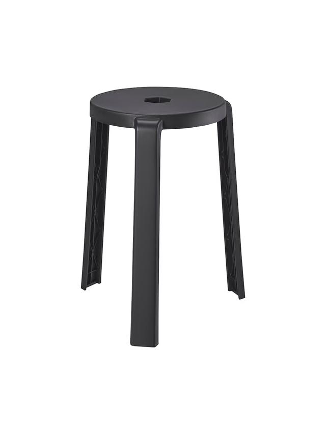 3 aýakly otyrgyç eplenmeýär, hatda poluň üstü deň däl bolsa-da, 3 aýagynyň hemmesi duran ýeriniň üstünde durýar. Boýy : 45 sm Oturýan giňligi :26 sm Synag : 100 kg Giňligi : 39 sm Reňki: Gara