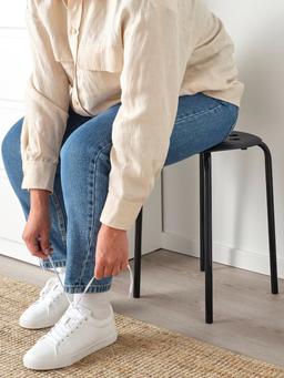 45 sm beýiklikde, ak reňkli oturgyç, ýeňil we çydamly gurluşy bilen gündelik ulanmak üçin amatlydyr.