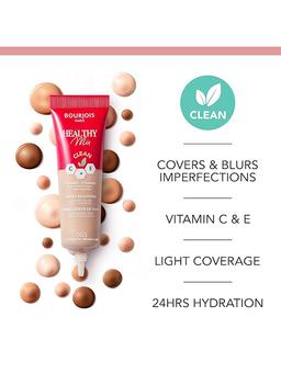 Aýratynlyklary Reňk: №004 MEDIUM Göwrümi: 30ml Düşündiriş Bourjois Healthy Mix Clean tonal kreminiň gözenekleri ýapmaýan we deriniň dem almagyna mümkinçilik berýän suwuk we ýeňil gurluşy bar. Tonal kremini owadan ulanylýar we deriniň üstünde aňsat ýaýraýar. Orta örtügi we tebigy ýarym mat görnüşli we çalmak üçin örän amatly. Ulanyş tertibi Barmagyňyz ýa-da ýörite gubka bilen tonal kremi çalyň. Burnuňyza, maňlaýyňyza, eňegiňize we ýaňaklaryňyza çalyň. Birkemsiz täsir etmek üçin, ony kemçilikleri we ýadawlygyň alamatlaryny ýapmak üçin garyşdyryň.