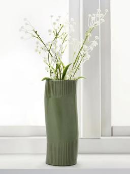 Bu 21 sm beýiklikdäki waza stoluňyza ýa-da interýeriňize gözelligi goşýar. Goýy ýaşyl reňki bilen öýüňize täze we tebigy üýtgeşiklik berýär. Materialy berk we arassa saklamak aňsat. Ulanylyşy: gül buketleri, dekora goşmak ýa-da stol üstüne goýmak üçin amatly. Üstünligi: ýagty we janly reňk, ýeňil we berk gurluş.