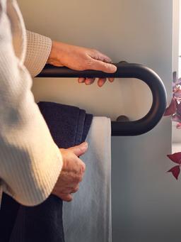 Bu uzyn demir asgyç polotensalary tertipli we elýeterli saklamak üçin ajaýyp saýlawdyr. Antrasit reňki häzirki zaman görnüş berýär we dürli iç bezeglerine laýyk gelýär. Ölçegi 65 sm bolup, birnäçe polotensany asmak üçin giň ýer berýär. Berk materialdan ýasalyp, çygly ýerlerde-de ulanylmaga amatlydyr. Banýa ýa-da aşhana üçin oňaýly we durnukly çözgütdir.