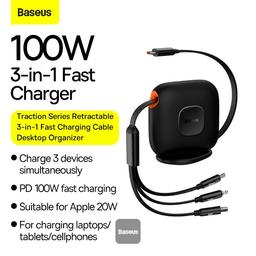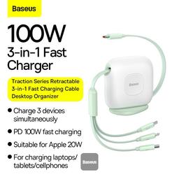 Baseus Traction Series Retractable 3 in 1 Fast Charging Cable Desktop Organizer Type-C to M+L+C 100W 1.7m