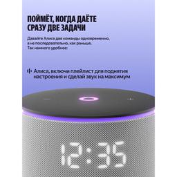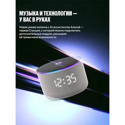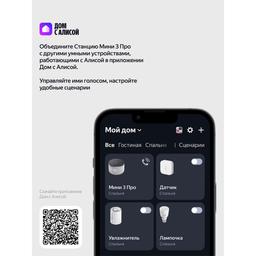 Яндекс Станция Мини 3 Про — первая умная колонка с Алисой, к которой можно подключать дополнительные модули, расширяя её привычные возможности. Слушайте музыку в классном качестве, носите Станцию с собой и превращайте в домашнюю климатическую систему. Ваш ассистент внутри Алиса с искусственным интеллектом в Станции Мини 3 Про умеет так много: она найдёт и включит, что попросите — музыку, аудиокниги, подкасты — и подберёт рекомендации по вашим интересам. Задавайте самые разные вопросы и получайте понятные и подробные ответы. Можете даже давать ей сразу несколько команд — Алиса поймёт их и выполнит, например: «Алиса, включи плейлист для поднятия настроения и сделай звук на максимум». Много пространства для любимой музыки Технические решения Яндекса делают звук в Станции Мини 3 Про удивительно громким, чистым и выразительным. ● Выразительное звучание: специально спроектированный динамик в 18 Вт с неодимовым магнитом и двумя пассивными излучателями усиливает звук и воспроизводит басы от 90 Гц. За счёт этого низкие частоты становятся заметнее, а любимые треки звучат ярче. ● Стереопара: объединяйте две Станции Мини 3 Про в стереопару, чтобы сделать звук в помещении ещё объёмнее. ● Режим Мультирум: включайте музыку на всех Яндекс Станциях в доме одновременно. Это удобно, например, когда перемещаетесь между комнатами. Просто скажите: «Алиса, включи музыку везде». Портативный аккумулятор Дополните Станцию Мини 3 Про портативным аккумулятором — и носите её с собой из комнаты в комнату и пользуйтесь где удобно⁵. Заряда хватит на 7 часов непрерывного прослушивания музыки⁶. Портативный аккумулятор не входит в комплект Яндекс Станции и приобретается отдельно. Управлением умным домом Станция Мини 3 Про поддерживает современные протоколы связи — Wi-Fi®, Zigbee™ и Matter™⁸. Подключайте к ней напрямую умные датчики, выключатели и другие устройства и управляйте ими голосом или с помощью удобных сценариев: «Алиса, выключи свет и включи шум дождя». Свет, который говорит без слов Помимо привычного LED-дисплея, у Станции Мини 3 Про есть анимированная функциональная LED-подсветка. Её свет и цвет сопровождают ваше общение с Алисой и меняются в такт музыке. Режим радионяни Поставьте умную колонку рядом с кроваткой малыша, и Алиса будет передавать все звуки из детской на телефон или другую Яндекс Станцию. Так будет проще услышать, когда ребёнок проснётся или заплачет. Функция «Шёпот» С Алисой можно говорить шёпотом, например, чтобы не разбудить близких. Если обратиться к Алисе шёпотом, она тоже понизит голос — точно так же, как это делают люди. Звонки на Станцию На умную колонку можно звонить из приложений Дом с Алисой или с другой Станции. Это выручит, когда не получается дозвониться на телефоны домашних, и очень удобно, если решили поговорить со всей семьей сразу. Сообщения на Станцию Когда нужно рассказать близким что-то важное, но неудобно звонить, передавайте сообщения на домашнюю колонку прямо из приложений Яндекса: Навигатора, Карт и Дома с Алисой, или между Станциями. Алиса прочитает их своим голосом. Портативный аккумулятор Портативный аккумулятор для Станции Мини 3 Про позволяет переносить умную колонку из комнаты в комнату и брать её с собой куда угодно, чтобы не расставаться с Алисой и любимой музыкой. Легко и надёжно крепится Благодаря магнитн