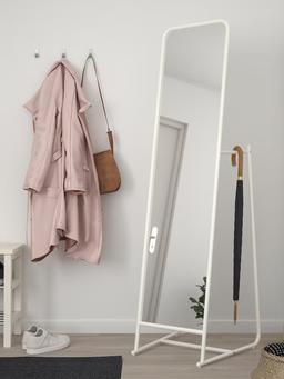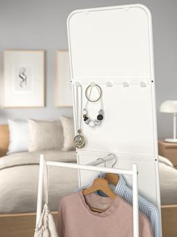 Aýna IKEA KNAPPER: Materialy Plastik, Aýna. Egin-eşik saýlamak üçin iň gowy hyzmat edýän uly, owadan aýna. Aýratynlygy: Yzky tarapynda egin-eşik we sumkalar üçin krýuçoklar ýerleşdirilen. Razmeri U: 48 sm, B: 160 sm. Reňki Ak.