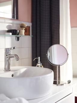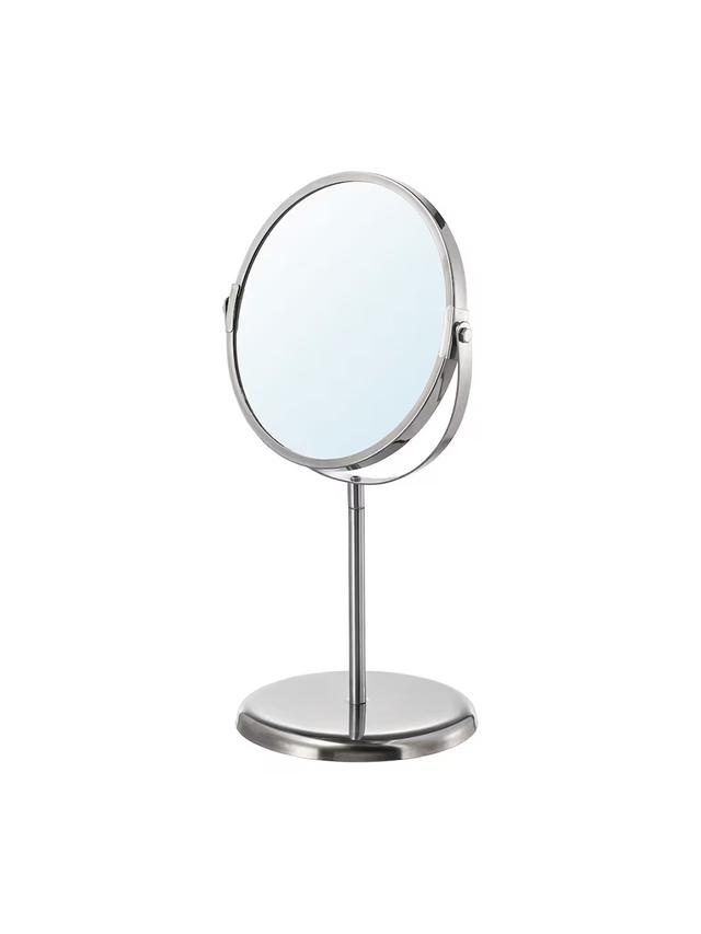 TRENSUM stol aýnasy poslamaýan polatdan ýasalyp, hammam otagynda ulanmak üçin amatly. Onuň bir tarapynda adaty, beýleki tarapynda iki esse ulaldylan aýna bar. 360° aýlanýar. Ulanmaly Ýerleri: Hammamyň ýa-da tuale stoly. Ýüzüňe seretmek we kosmetika etmek. Tehniki Aýratynlyklary Reňki: Polat Materialy: Aýna, Poslamaýan polat. Ölçegleri: Aýnanyň diametri: 17 sm. Beýikligi: 33 sm. Aýratynlyklary: 2x ulaldyjy tarapy bar, poslamaýan polat.