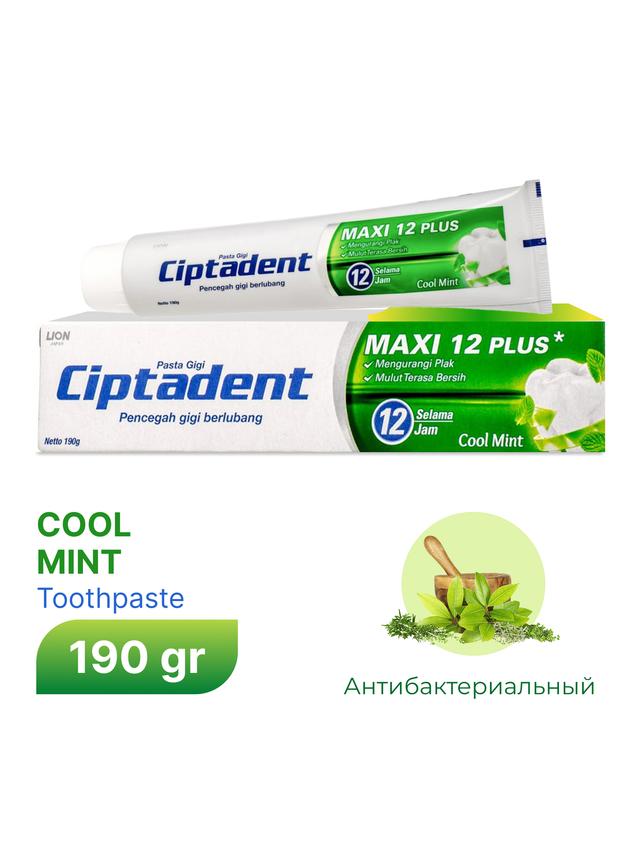 Ciptadent Maxi Cool Mint diş pastasy tutuş maşgala üçin maksimal goragy we aýratyn terligi üpjün edýär. Onuň düzümi işjeň ftor we kalsiý bilen baýlaşdyrylyp, olar diş emalyny berkidýär hem-de kariesden netijeli goraýar. "Cool Mint" güýçli narpyz tagamy arkaly, pasta agyzdan gelýän ýakymly bolmadyk yslary şol bada aýyrýar we uzak wagtlap dowam edýän buzly terlik duýgusyny berýär. 190 gramlyk uly gabamy ony gündelik agyz boşlugynyň idegi üçin tygşytly we amatly saýlawa öwürýär.