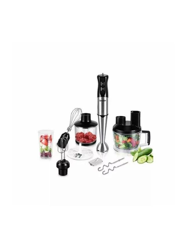 Блендер Sonifer SF-8086 — многофункциональное кухонное устройство, которое позволяет выполнять различные процессы приготовления пищи. Прибор объединяет в компактной сборке 10 полноценных приборов: блендер, овощерезку с насадками, измельчитель, миксер, тестомес, венчик для взбивания. Некоторые особенности блендера: Поворотный регулятор обеспечивает плавную и точную регулировку мощности. Медный двигатель мощностью 800 Вт с защитой от перегрева. Мерный стакан объёмом 600 мл, стакан блендера — 500 мл, чаша для измельчения — 800 мл. Смесительный стержень можно снимать и заменять, что упрощает очистку. В верхней части устройства есть поворотный регулятор скорости, а на ручке — переключатель и кнопка Turbo, которые позволяют легко управлять машиной. Устройство разработано для простоты использования, каждая функция имеет удобную и интуитивно понятную систему управления.