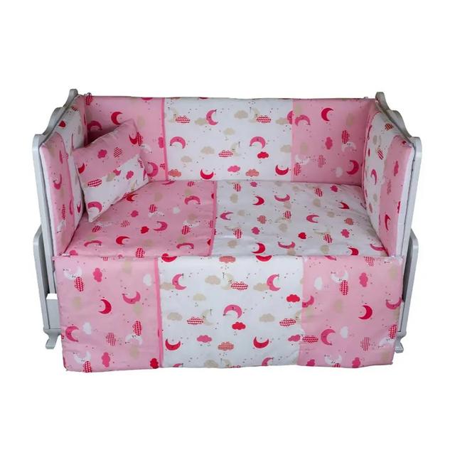 Бортик для детской кроватки от элиф - это неотъемлемый аксессуар для детской постели, который обеспечивает безопасность и комфорт малыша во время сна и отдыха. Наши бортики в кроватку для новорожденных созданы с особым упором на качество и безопасность, чтобы вы могли быть уверены, что ограждение обезопасит кровать для маленьких детей и защитит их от случайных ударов. Количество предметов внутри: 7 Состав: Хлопок 100%, Полиэфир 100% Наполнитель полиэфирное волокно Дополнительная информация Предварительная стирка обязательна! Стирать отдельно от вещей темного цвета. Особо деликатная стирка при 30°c. Не отбеливать. Деликатный отжим и сушка в барабане машины. Не гладить. Не использовать химчистку.