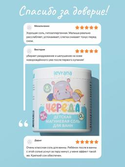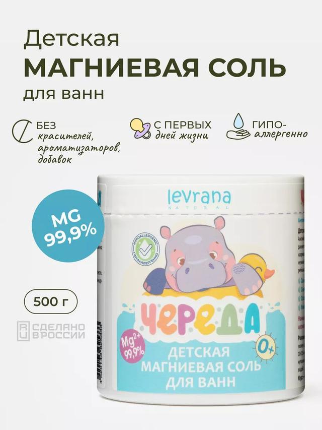 Нежный уход и спокойствие для малышей. Английская магниевая соль для ванн разработана специально для детей с рождения (0+). Натуральный минерал успокаивает, снимает мышечное и нервное напряжение, заботится о нежной коже малыша, способствуя спокойному сну и здоровью. Что делает: — Снижает нервную возбудимость и мышечное напряжение — Уменьшает частоту кишечных колик — Снимает опрелости и покраснения на коже — Способствует профилактике атопического дерматита — Обеспечивает спокойный сон Ключевые компоненты: 🔸 Магния сульфат — чистый природный минерал, успокаивает нервную систему, улучшает состояние кожи Особенности: ✔️ 100% натуральный состав, наивысшая степень очистки ✔️ Без красителей, ароматизаторов и добавок ✔️ Подходит для детей с рождения (0+) ✔️ Безопасно для нежной детской кожи ✔️ Рекомендуется для регулярного использования Способ применения: Растворить 4–5 столовых ложек соли в ванне с водой (температура 37–38°C). Купать ребёнка 10–15 минут, следя, чтобы малыш не глотал воду. После купания смыть остатки соли чистой проточной водой. Рекомендуемый курс: 10 процедур с интервалом 2–3 дня. Предупреждение: Возможна индивидуальная непереносимость. Избегать попадания воды в рот ребёнка. Хранить в сухом месте, недоступном для детей. Состав: Magnesium Sulfate (Магния сульфат). Вес: 500 г
