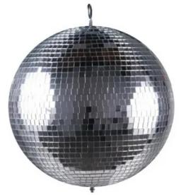 Он состоит из мелких частиц зеркала, наклеенных на эллипсообразную поверхность вспененного полистирола. Это обеспечивает шару максимальную прочность при минимальном весе. Шар работает одновременно с осветительным прибором и специальным моторчиком, который приводит его в движение со скоростью от 1,5 до 5 оборотов в минуту,