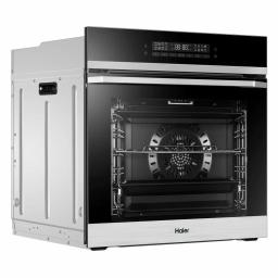 Духовой шкаф Haier HOQ-P16AS5SX — профессиональная модель с 16 режимами нагрева. Позволяет готовить блюда с использованием пара, в том числе для автоматической программы выпечки хлеба. Также есть режим приготовления под вакуумом и сушки. Некоторые особенности: Активное тепло. Специальная конструкция воздуховодов в верхней и задней части духовки позволяет поддерживать равномерную температуру с колебанием не более чем в 1 °C. Динамическая вентиляция. Благодаря клапану давления пар циркулирует в камере духовки, возвращается на поверхность продукта и формирует паровое «защитное покрытие». Автоматическая программа выпечки хлеба. Есть два запрограммированных варианта — для хлеба (буханки) и для булочек. Пошаговое приготовление. Можно установить до 3 этапов программы приготовления. Режим «Пицца». Подходит для любого типа пиццы и плоских блюд из теста. Аква очистка. Улучшенная эмаль покрытия полости духовки, идеальное удаление загрязнений и запаха с помощью пара. Прохладная дверца духовки. Специальная конструкция вентиляции и излучения позволяют обеспечить подъём температуры дверцы духовки во время приготовления не более чем на 40 градусов Цельсия.