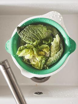 Сито диаметром 24 см в светло-зелёном цвете удобно для приготовления и мытья продуктов. Лёгкое и прочное изделие.