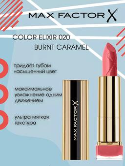 Характеристики Цвет: №020 BURNT CARAMEL Объем: 4gr Описание Великолепный цвет в одно мгновение! Более гладкие, мягкие губы по сравнению с ненакрашенными губами — такой эффект помады от Max Factor Colour Elixir сохраняется в течение длительного времени. Роскошный и насыщенный цвет на гладких, красивых губах! Формула: Формула Elixir на 60 % состоит из смягчающих кожу компонентов, восстановителей и антиоксидантов, включая витамин E, зрительно преображает губы и делает их мягче всего за 7 дней. После нанесения Colour Elixir помада активно увлажняет и смягчает губы. Способ применения Нанесите помаду на кисточку для помады. Накрасьте с помощью кисточки губы. Промокните губы салфеткой и нанесите еще один слой. Чтобы помада держалась на губах дольше, нанесите между слоями полупрозрачную пудру.