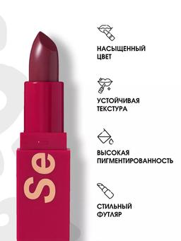 Характеристики Цвет: №06 SEXY Объем: 4gr Описание Помада с устойчивой текстурой My Lip Symbol комфортно ощущается на губах, равномерно наносится и придает насыщенный цвет благодаря высокой пигментированности. Касторовое масло в составе питает, смягчает и разглаживает кожу губ. Текстура имеет приятный аромат сочного винограда. Роскошный футляр алого цвета с матовым покрытием soft-touch и золотым леттерингом станет отражением вашего характера и статуса. Способ применения Для плотного покрытия и насыщенного оттенка наносите помаду из стика. Чтобы покрытие было легким и полупрозрачным, аккуратно наносите подушечками пальцев похлопывающими движениями.