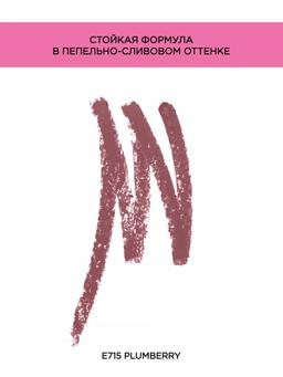 Характеристики Цвет: PLUMBERRY Объем: 1.4gr Описание Карандаш с насыщенной кремовой текстурой легко наносится скользящим движением и отлично держится на губах. С ним ваша помада точно останется на месте долгое время. А для более длительного и ровного эффекта воспользуйтесь советом визажистов: нанесите карандаш на всю поверхность губ и наслаждайтесь стойким цветом! Способ применения Нанесите карандаш по контуру губ, растушуйте. Для большей стойкости помады и интенсивности цвета наносите карандаш на всю поверхность губ.