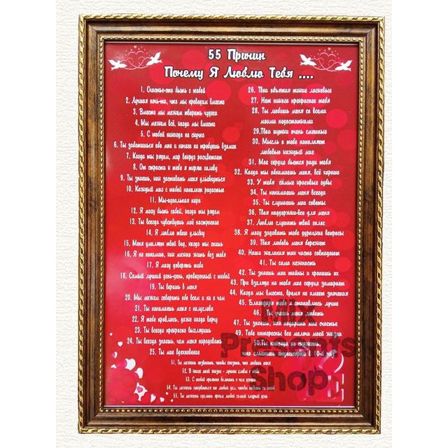 Постер "55 причин почему я люблю тебя" А4 в рамке