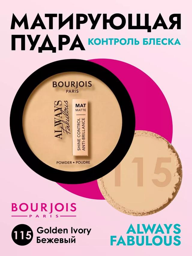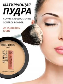 Характеристики Цвет: №115 GOLDEN IVORY Объем: 10gr Описание Матирующая компактная пудра Bourjois Always Fabulous сливается с тоном кожи для придания максимально естественного оттенка и обладает уникальным тройным действием: минимизирует несовершенства кожи, суживает поры и разглаживает морщинки. Создает ровное сияющее покрытие, сохраняющееся в идеальном виде в течение всего дня. С помощью пудры Always Fabulous вы всегда будете выглядеть непревзойденно! Она легко набирается кисточкой и спонжем, а также прекрасно наносится на лицо тонким слоем. Идеально подходит для утреннего макияжа и для освежения мейкапа в течение дня. Может использоваться регулярно. Способ применения Нанесите пудру на чистую кожу лица или поверх основы для макияжа с помощью круглой кисти или спонжа. Начинайте наносить с центра лба, двигаясь вниз по скулам до подбородка. Пройдите легонько по носу и щекам.