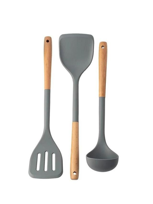 "Силиконовый набор для приготовления пищи — это комплект кухонных принадлежностей (лопаток, ложек, половников, венчиков, кисточек и т. д.), которые изготовлены из пищевого силикона. Модель: GJ-300 Количество предметов: 3"