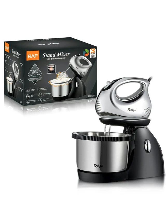 Стационарный миксер - это кухонный прибор, предназначенный для взбивания, перемешивания и смешивания различных ингредиентов. Он состоит из стационарной стойки, на которой установлен двигатель, и насадок, которые вращаются вокруг своей оси. Модель: R.6628 Объем: 2,5L Мощность: 1000W Комплектация: документация, насадка-венчик (2 шт.), насадка-крюк (2 шт.) Напряжение питания: 220-240В