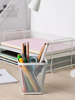 Стакан для ручек, белый, металл — удобно хранить ручки, маркеры и другие мелкие офисные принадлежности на столе. Материал: металл Цвет: белый Применение: дом, офис, учебная комната, рабочий стол Особенности: прочный и надёжный, легко чистится, стильный дизайн, помогает поддерживать порядок