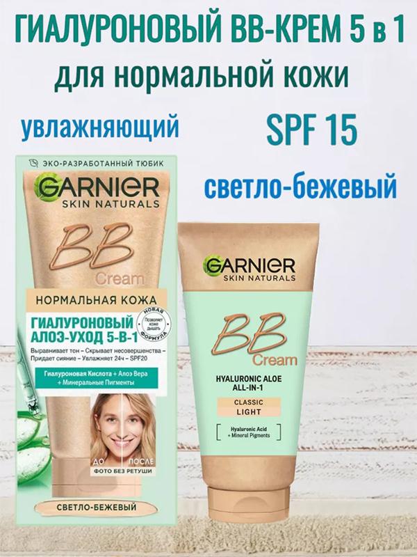 Тональный ББ крем Garnier Гиалуроновый Алоэ-уход 5в1, светло-бежевый