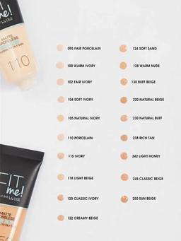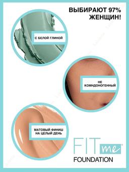 Характеристики Цвет: №100 ФАРФОРОВЫЙ Объем: 30ml Описание Тональный крем Fit Me придает коже естественный матовый финиш, без эффекта маски. Формула с глиной* и пудровыми частицами матирует, скрывает поры и препятствует появлению жирного блеска. Легкая текстура тонального крема равномерно наносится и распределяется. Тональный крем Fit Me держится в течение всего дня, oщущается ультралегким и дышащим на коже. Широкая палитра из 19 оттенков позволит тебе подобрать подходящий оттенок. *Производное глины Способ применения Нанесите небольшое количество средства на увлажненное лицо по направлению от лба к линии подбородка, распределите пальцами или спонжем.