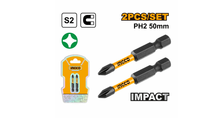 Бита для ударной отвертки PH2, 250 мм, 1 шт. S2, промышленная сталь, черная поверхность с магнитом. Упаковано в двойной блистер.