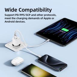 1. Двухпортовая быстрая зарядка с разъемами USB-A и USB-C, интеллектуальное распознавание устройств и динамическое распределение энергии. 2. Использование технологии GaN (нитрид галлия) для уменьшения размеров, повышения эффективности, экономии энергии и содействия низкоуглеродной защите окружающей среды. 3. Встроенный запатентованный Huntkey планарный трансформатор, еще больше уменьшающий размеры. 4. Поддержка протокола быстрой зарядки UFCS, обеспечивающая более широкую совместимость.