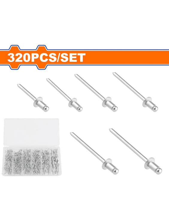320 sany/komplekt Materialy: alýumin we uglerodly polat Ýüzüniň işlenişi: anod okislenmesi + sinklenen Komplektde: 80 sany 2,4x5,5 mm 60 sany 3,2x3,2 mm 50 sany 3,2x6,0 mm 60 sany 3,2x7,5 mm 40 sany 4,0x8,0 mm 30 sany 4,8x8,0 mm Plastik gutuda gaplanan