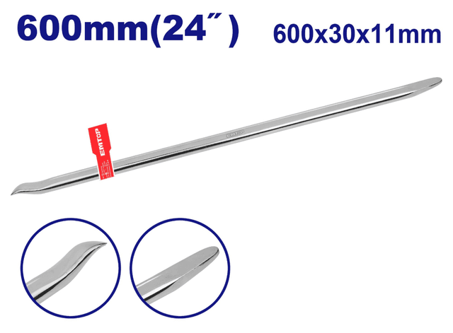 Emtop EMQB2324 montirowkasy (uzynlygy 600 mm) — bu demontaj işleri, awtoulag şinalaryny aýyrmak we ryçag güýjüni talap edýän amallar üçin niýetlenen berk el guralydyr. Ol dövülen hrom-wanadiý poladyndan (Cr-V) ýasalan bolup, ýokary berkligi we agram astynda gyşarma garşy durnuklylygy üpjün edýär. Esasy häsiýetnamalary: Materialy: hrom-wanadiý polady (Cr-V) Uzynlygy: 600 mm (24 dýuým) Görnüşi: goşmaça berklik üçin altyburçly profil Aýratynlyklary: uzak ömürlilik üçin termiki taýdan berkidilen, poslama garşy örtük Agramy: takmynan 1.1 kg