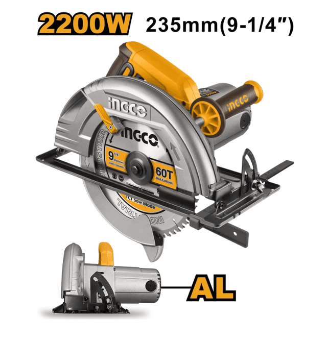INGCO CS2358 INDUSTRIAL tegelek (sirkulýar) pürşesi tagtalary, ýumşak metallary, laminaty, bruslary, gipsokartony we beýlekileri takyk we göni kesmek üçin niýetlenendir. Bu hünärmen guraly sazlap bolýan kesiş çuňlugyna we burçuna eýedir. Guralyň görnüşi: Tegelek pürşe Ugur: INDUSTRIAL Model: INGCO CS2358 Kuwwaty: 2200 Wt Napraženýesi: 220-240W~50/60 Gs Aýlawy: 3800 aýl/min Diskiň diametri: 235x25,4 mm Maksimal kesiş çuňlugy: 45°- 68 mm; 90°- 80 mm Kesiş çuňlugyny sazlamak - bar Çalt sazlama funksiýasy - bar Kabelyň uzynlygy - 2 m Ýumşak başlangyç (plawnyý pusk) - ýok Gaplamasy: reňkli guty Komplektasiýasy: 235x25,4 mm 60T ýonujy disk - 1 sany, 13 mm-lik tortsewoý açary - 1 sany, gönükdiriji - 1 sany, ugol şşotkalary 1 jüt, kepillik talony. Agramy: Netto - 8,2 kg; Brutto – 10,0 kg Gaplanan harydyň ölçegleri: Uzynlygy - 40 sm; Giňligi - 33 sm; Beýikligi - 30 sm