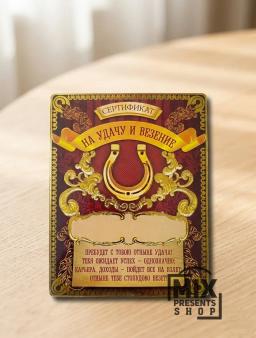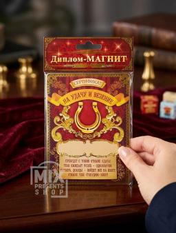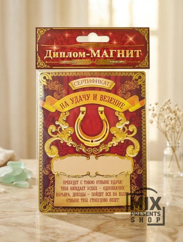 Диплом магнит "Сертификат на удачу и везение" (10×13см)