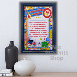 Çarçuwaly diplom "Gowy okuw üçin" 18x23 sm Ony stoluň üstünde goýup ýa-da diwara asyp bilersiňiz. Gaplamak: paket
