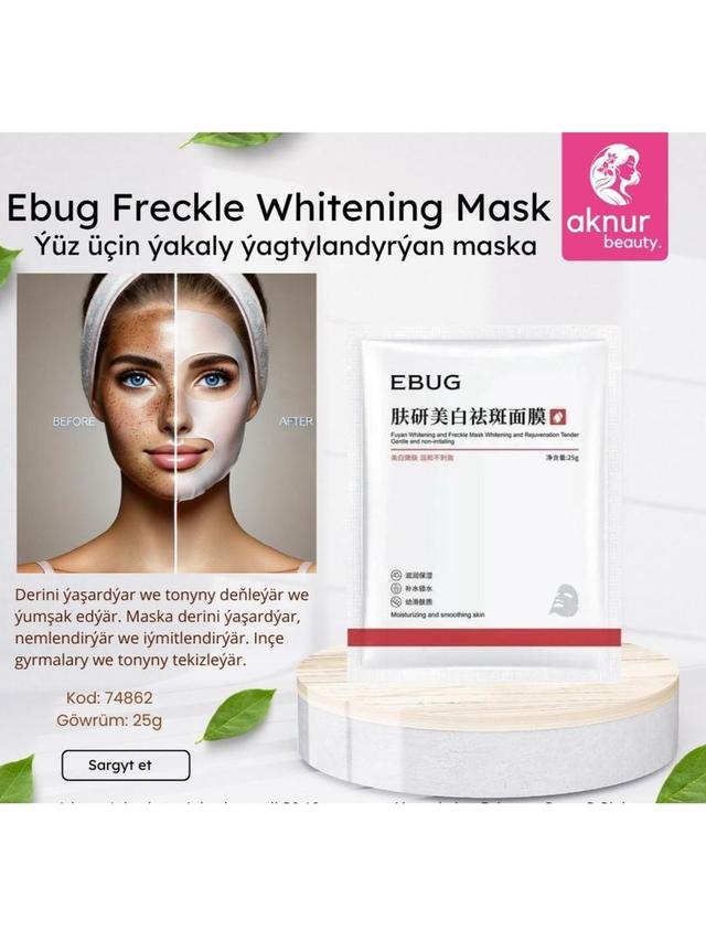 EBUG nemlendiriji ýüz maskasy (25 g) — bu derini çalt dikeltmek we çyglylyk bilen baýlaşdyrmak üçin niýetlenen mata görnüşli maskadyr. Güýçli nemlendirme: Deriniň öýjüklerini çuňňur çyglandyrýar, guraklygy we dartylma duýgusyny aýyrýar. Serginletmek täsiri: Ýadawlygyň yzlaryny bada-bat aýyrýar, ýüzi tonuslandyrýar we täzeleýär. Dikeltmek: Gyjyndyrylan derini köşeşdirmäge we ýüzüň gurluşyny gowulandyrmaga kömek edýär. Lowurdy we ýumşaklyk: Ulanylandan soň deri ýüpek ýaly ýumşak, tekiz we janly bolýar. Amatlylyk: Mata esasy ýüze dykyz ýelmeşýär, bu bolsa syworotkanyň derä doly siňmegini üpjün edýär.