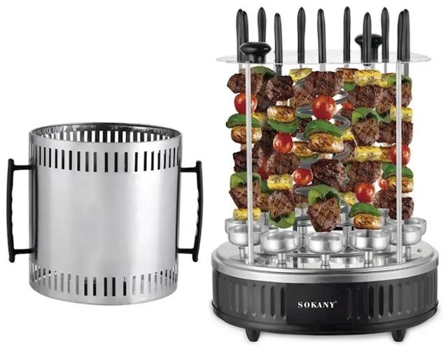 Elektrik şaşlik öndürijisi Sokany SK-6114, dik skeweri bolan planşet şaşlik öndürijisidir. Etden, towukdan, ördekden, ownuk etden, balykdan we gök önümlerden şaşlik ýasamak üçin amatly. Käbir aýratynlyklar: kuwwaty: 1500 Wt; skeweriň uzynlygy: 33 sm; skewerleriň sany: 11 bölek; material: poslamaýan polat; doly ýük bilen bişirmek wagty: 10-15 minut; bir wagtyň özünde etiň agramy: 1-1,2 kg; ýyladyş elementi merkezde ýerleşýär.