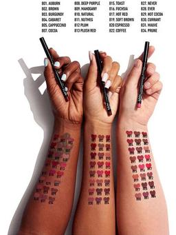 Aýratynlyklary Reňk: №SPL813 PLUSH RED ROUGE SOMPTUEUX Göwrümi: 1gr Düşündiriş Lip Pencil, halaýan pomada ýa-da blesk üçin iň gowy galamdyr. Ýöne önüm ýekebara rol oýnamaga-da taýyn. Elbetde, NYX Professional Makiýž dodak çyzgysy, islenýän kontury döretmäge kömek eder. Ýagly krem we mat bilen gutarnykly netije kepillendirilýär. Bu gözellik guraly dodaklaryň näzik derisine ideg bilen döredildi: ösümlik ýaglary we üç görnüşli mumy gurşap alana meňzeýär - gury deri ýok diýiň. Onuň kömegi bilen dodaklaryň makiýažy diňe bir ajaýyp ýerine ýetirijilik bilen däl, eýsem çydamlylygy bilenem täsir galdyrýar. Inçe dodak galam has ýiti bolanda, ony dikeltmek aňsat bolar. Ulanyş tertibi Dodaklary galam bilen çyzyň, zerur bolsa şekillendiriň we pomada täsiri üçin dodaklaryň tutuş meýdanyna garyşdyryň. Şeýle hem, dodaklary konturdan 1 mm ýokaryk çekip, olaryň ululygyny artdyryp bilersiňiz.