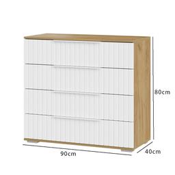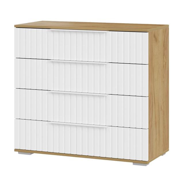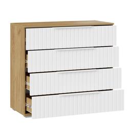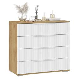 Gapdaly bölümli we dört çekmeli giň komod Dört sany dürli ölçegdäki çekmesi bolan bu giň komod iri goşlary we dürli peýdaly maýda-çüýdeleri saklamaga mümkinçilik berýär. Korpusynyň agaç teksturasy we gapylarynyň ak reňki interýere döwrebap hem-de ýakymly görnüş berýär. Özboluşly metal tutawaçlary komodyň stilini has-da baýlaşdyrýar. Komod aýajyklaryň üstünde gurnalýar, bu bolsa otagy arassalamakda amatlylyk döredýär. Şeýle komod ýatylýan otagda, myhmanhanada, aşhanada ýa-da çagalar otagynda tapylgysyz bolar. Aýratynlyklary: Korpusyň materialy: Agaç teksturaly LDSP. Gapylaryň materialy: Ak reňkli MDF. Gurluşy: 4 sany dürli ölçegdäki çekme. Furnitura: Özboluşly metal tutawaçlar. Aýratynlygy: Aýajykly dizaýn. Ölçegleri: Boýy: 80 sm. Ini: 90 sm. Çuňlugy: 40 sm. Eltip bermek we gurnamak: Aşgabat şäheri boýunça mugt.