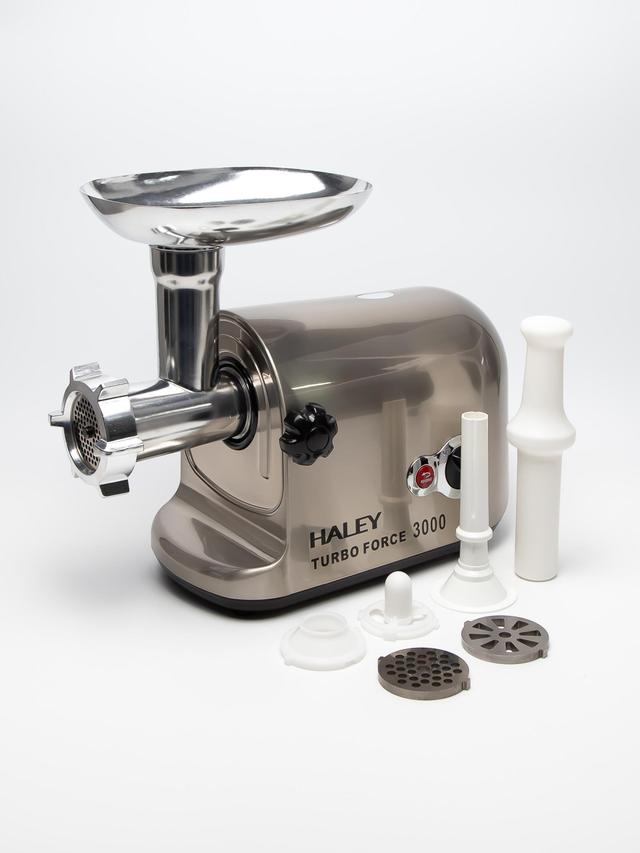 HALEY HY1305 — öýde tiz we ýokary hilli et geçirmegi üpjün edýän güýçli elektrik et geçirme enjamy. Onuň berk gurluşy, güýçli motory we amatly ulanylyşy aşhana üçin iň gowy saýlama öwürýär. Artykmaçlyklary Güýçli motor — eti, gök önümleri we beýleki önümleri aňsatlyk bilen geçýär. Berk metal pyçaklar — çalt we deň derejeli üweýiş üpjün edýär. Nasadkalar toplumda — faşmak, kolbasa we beýleki tagamlar üçin amatly. Amatly gurluş — ýygnamak we arassalamak ýeňil. Aşyr yükden gorag — enjamyň howpsuz we uzak ömürli işlemegini üpjün edýär. Aýratynlyklary Modeli: HALEY HY1305 Görnüşi: elektrik et geçirme maşyny Pyçak materialy: metal Nasadkalar: faşmak, kolbasa, gök önümler Ulanylyşy: et we beýleki önümleri geçmek üçin HALEY HY1305 — öýde tagam taýýarlamagy has tiz we amatly edýän ygtybarly enjam.