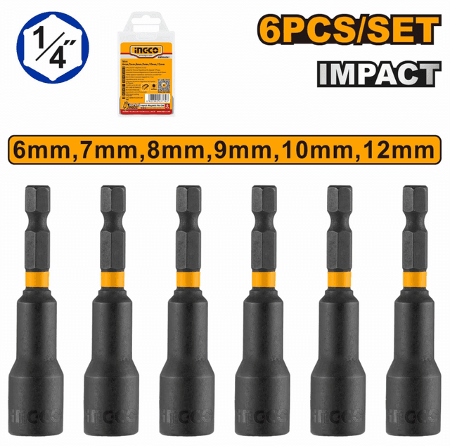 toplum: 6 mm, 7 mm, 8 mm, 9 mm, 10 mm, 12 mm Okunyň diametri (hwostowik): 1/4 dýuým Altyburçlugyň uzynlygy: 65 mm Materialy: 50BV30 Güýçli magnitli