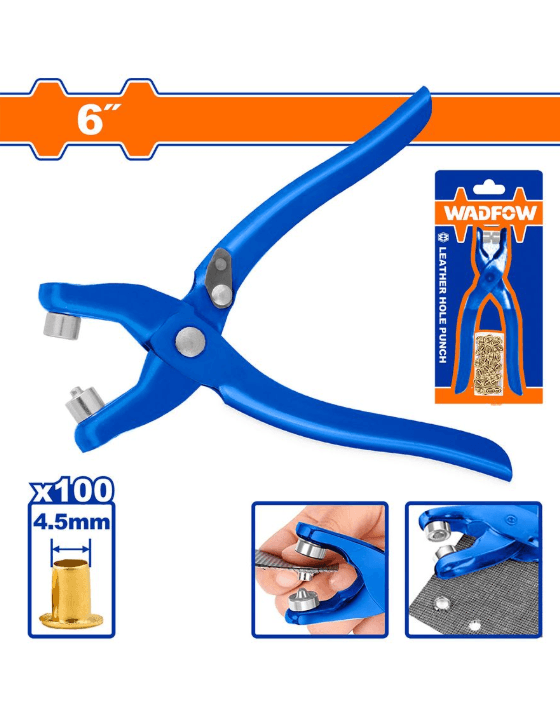 Lýuwers (halka) gysgyçlar toplumy Ölçegi: 150 mm / 6 dýuým Komplektde: 1 sany lýuwers gysgyjy 100 sany metal lýuwers (halka) Metal halkalaryň diametri: 4,5 mm Mata, deri, brezent, çadyr, kenep, plastik we ş.m. üçin amatly Süýşürilýän karton gaplamada gaplanan