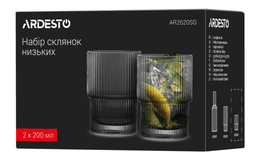 Ardesto Graphite AR2620SG aýna toplumy 200 ml göwrümi bolan iki pes aýnadan ybarat. Tehniki häsiýetnamalary: Aýnanyň beýikligi: 8.8 sm; Üstki diametri: 6.8 sm; Material: aýna; Reňki: üýtgeşik tüsse, aýnalara döwrebap we stilli görnüş berýär; Dürli içgileri bermek üçin amatly; Gap ýuwýan maşynda ýuwup bolýar. Öndürilen ýurdy: Hytaý.