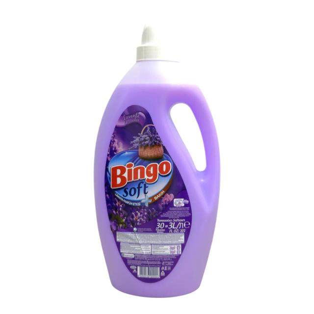 Bingo Soft Lavanda (3 l) — bu egin-eşikleriňizi ýumşatmak we olara tebigy lawanda ysyny bermek üçin niýetlenen serişdedir: Lawanda ysy: Egin-eşiklerde uzak wagtlap galýan, rahatlandyryjy we ter "Lawanda şemaly" ysyny goýýar. Aýratyn ýumşaklyk: Matanyň süýümlerini ýumşadyp, eşikleriň deri üçin ýakymly we nermin bolmagyny üpjün edýär. Statik garşylyk: Sintetik matalaryň elektriklenmegini aýyrýar, netijede eşikler bedene ýelmeşmeýär. Ütüklemegi aňsatlaşdyrýar: Matadaky epinleri tekizleýär, bu bolsa ütüklemegi has ýeňil we çalt edýär. Tygşytly uly gap: 3 litrlik gap ortaça 30 gezek ýuwmak üçin ýeterlikdir.