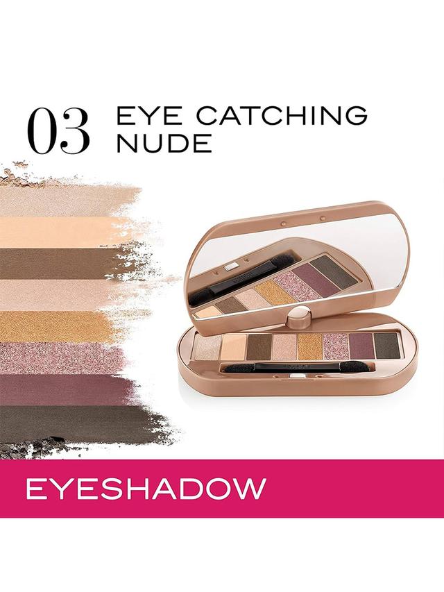 Aýratynlyklary Reňk: №03 EYE CATCHING NUDE Göwrümi: 4.5gr Düşündiriş Bourjois Eye Catching Nude Palette gapma-garşylykly ýa-da rahat geçiş döretmegi, gündelik ýa-da agşam makiýažy ulanmagy aňsatlaşdyrýan 8 kölege bar. Kölegeleriň dürli dokumalary bar: mat, glýans, ýalpyldawuk. Göz gabaklarynyň derisinde ýumşak ýatýarlar we gündiz ýykylmaýarlar. Palitrada giň aýna we amatly aplikatory bar. Ulanyş tertibi Aplikator ýa-da çotga ulanyp, saýlan göz reňkiňizi gabaklaryňyza deň derejede çalyň.